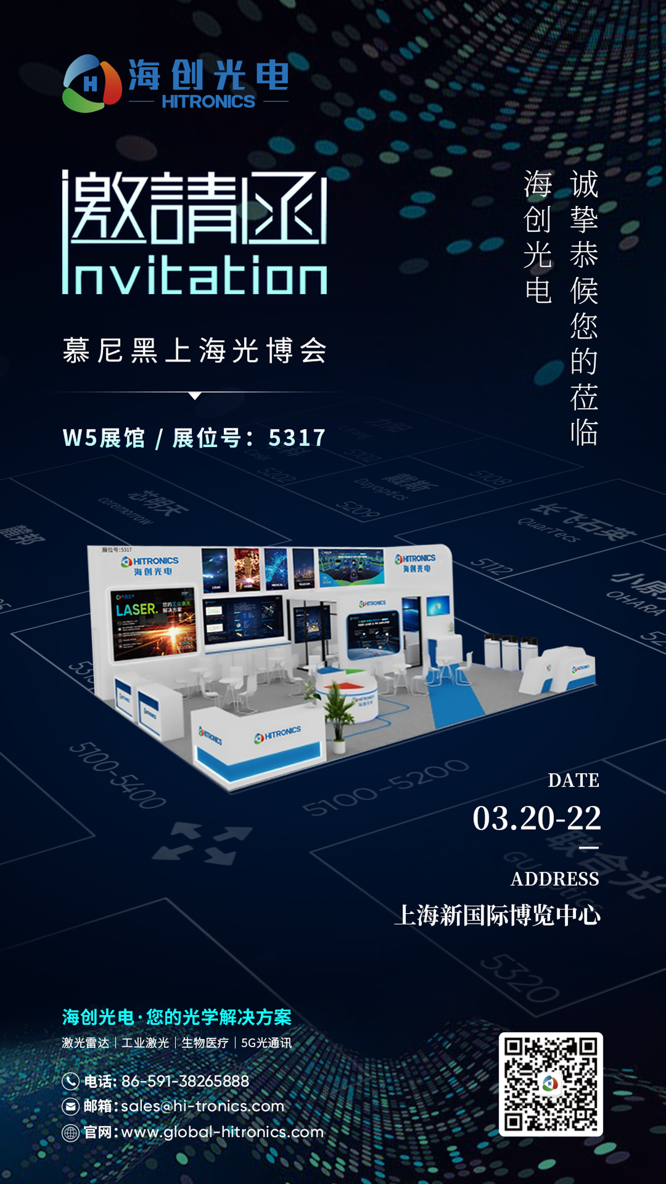 ● 展会名称: 2024慕尼黑上海光博会● 展会时间:3月20-22日● 展馆:W5● 展位号:5317● 展馆地址:上海新国际博览中心